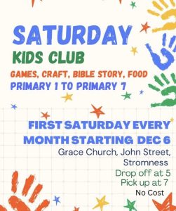 « All Events This event has passed. FREE P1 to P7 Kids Club first Saturday every month December 6 @ 5:00 pm - 7:00 pm Add to calendar Google Calendar iCalendar Outlook 365 Outlook Live Details Date: December 6 Time: 5:00 pm - 7:00 pm